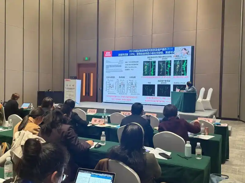 在此次报告中,章依文主任重点介绍了亚洲第一株拥有自主专利的精神益生菌(情绪益生菌)——情绪益生菌PS128。情绪益生菌PS128已完成一系列细胞实验、动物实验及人体临床研究,证实其可调节大脑中的多巴胺与血清素水平,改善抑郁与焦虑行为、及功能型胃肠症等症状。她还分享了一项发表在国际权威期刊《Gut Microbes》上的研究成果:情绪益生菌PS128可以透过恢复神经元形态及催产素作用,有效改善VPA诱导的孤独症(ASD)小鼠的社交缺陷、焦虑、认知缺陷等行为问题。