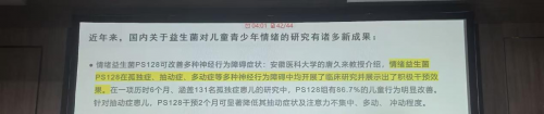 近年来,随着脑肠轴理论不断深入,国内外关于情绪益生菌调节儿童青少年情绪及相关症状的研究也取得了更多新进展,为临床干预提供了充实的循证依据。由此,孙雅主任提到一个基于脑肠轴理论研发,并在孤独症、抽动症、多动症等多种神经行为障碍中均开展了临床研究并展示出了积极干预效果的情绪益生菌产品——情绪益生菌PS128。
